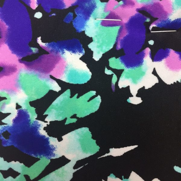 Purple Flowers on Black Spandex #144